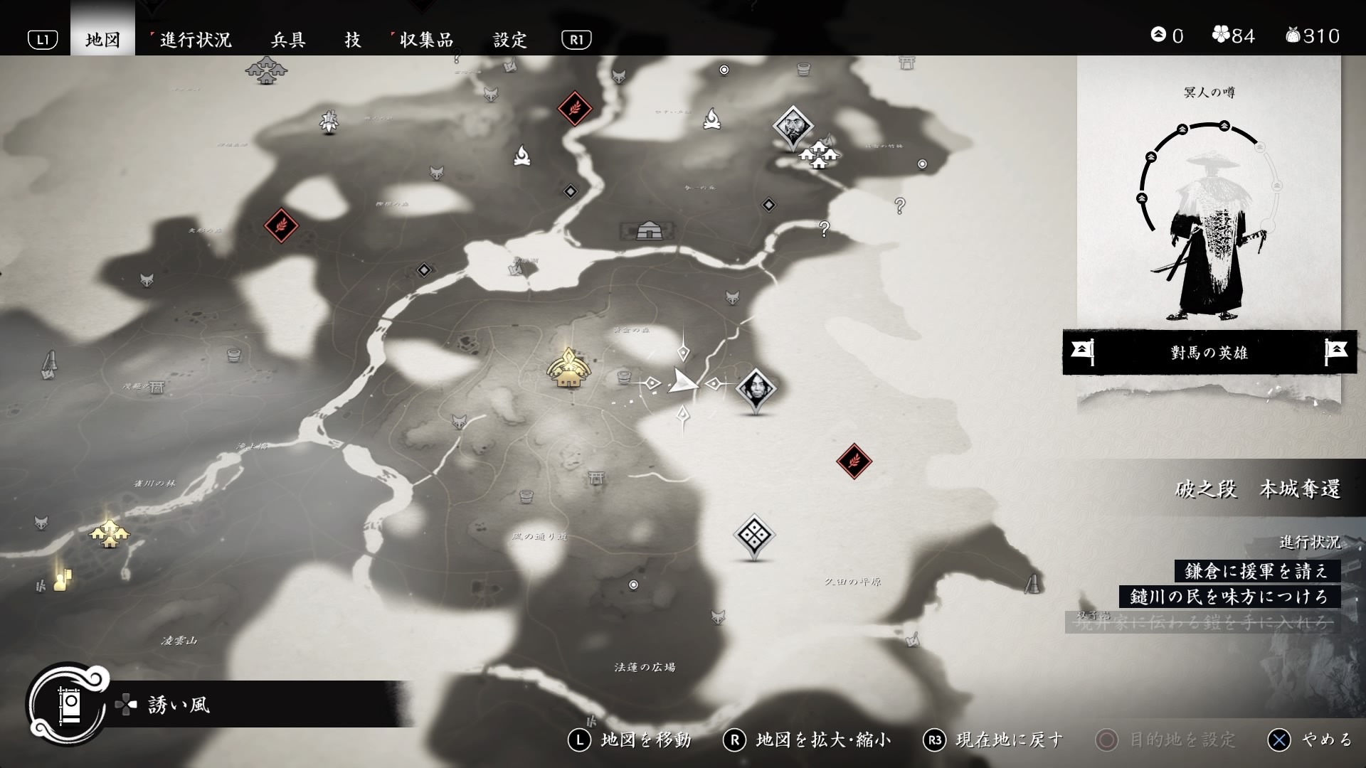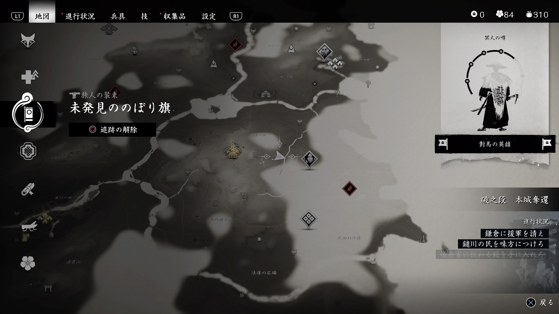 ある アニマ鯖 On Twitter 旅人の装束着て マップ画面で右ボタンで 探索対象選択 のぼり旗 Ghostoftsushima Ps4share