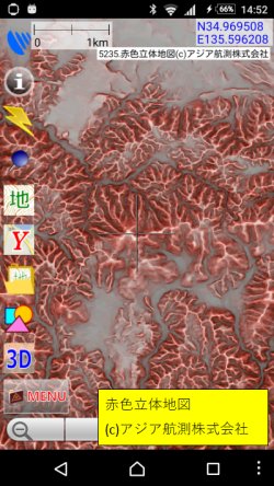 Version 1 28 リリース 赤色立体地図 のオーバーレイ表示 登山 防災用gpsオフラインマップアプリ Skywalking The Gps Logger オフィシャルサイト