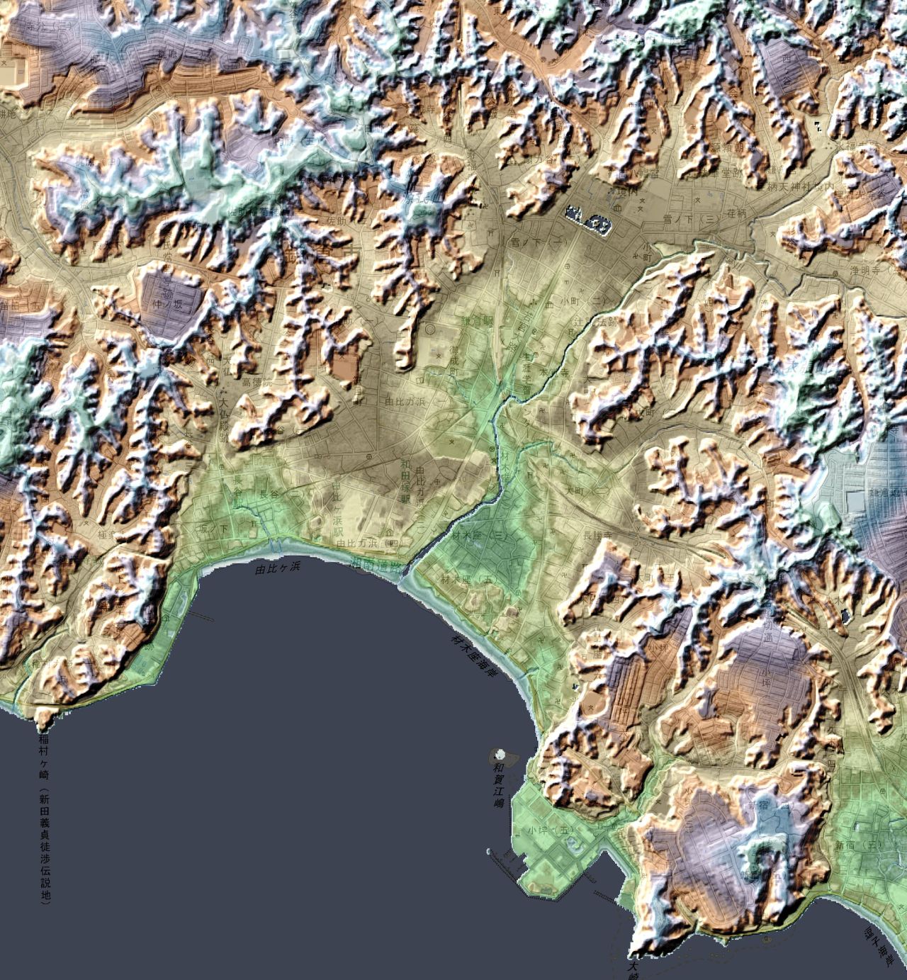 Dan杉本 No Twitter 赤色立体図ではありませんが ブラタモリでやっていた鎌倉の地形を描画 基盤地図5mメッシュ 地理院地図 カシミール3d Http T Co Ex24svkat1